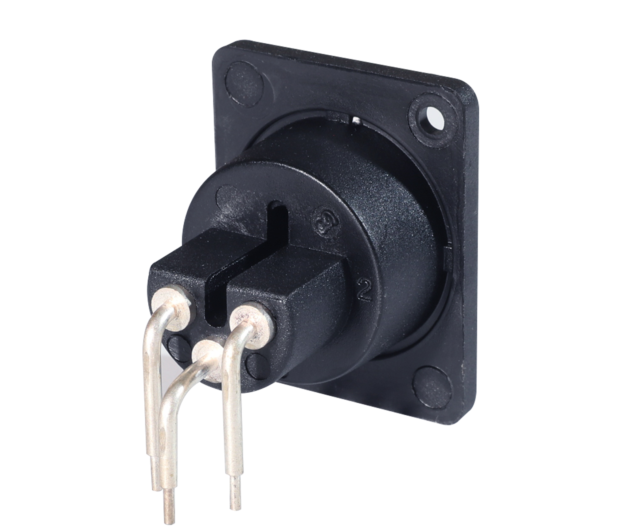 3 pole XLR 塑膠母插座,2.5mm 面板安裝孔,水平 PCB 安裝